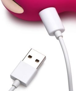 This hot pink, silky smooth rabbit vibe is power packed with 5 speeds and 5 patterns of rumbling vibration! Enjoy deep, fulfilling penetration as you let the plush rabbit ears tingle and tease your clit! Made of premium, phthalate-free silicone, this toy is built for a long shelf-life and body-safe fun. Buttons are located on the handle so you can easily switch settings. When you play solo you can enjoy dual stimulation induced orgasms, or you can invite your partner to use this fantastic toy on you! Don’t limit yourself to the bedroom; this toy has a waterproof rating of IPX6 so it does well in the shower! Wash with warm water and soap, then spray clean with a toy cleaner between uses. Store clean, dry and in a dark place away from direct sunlight. Recharge using the USB cable provided.