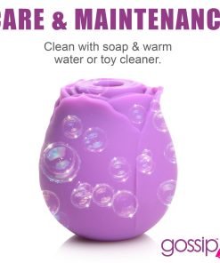 The sweet aroma of sexy satisfaction is the only perfume this silicone rose gives off. Made to fit in the palm of your hand, this blissful best friend will travel with you wherever you go and give you that stress relief and indulgent release you need at any time and any place you can find some time for yourself. This plush, silicone rose has soft petals that caress your most sensitive of spots and sucks gently on your little pearl. With 3 speeds and 7 modes of powerful suction, you can count on some cross-pollination happening as you let your nectar drip from your own honeypot! Rated as IPX6, it is waterproof and can be taken into the shower (but not submerged underwater). Indulge whenever you like for solo self-care or sneak it in between you and your partner so they can penetrate you while you keep your clit happy, too! After you play, recharge using the nightstand USB charger; it will look like a cute rose on display on your bookshelf or desk whenever it's not in use. Use only with water-based lubricant for best results. To clean, use warm water and mild soap then rinse and spray with a toy cleaner before wiping dry with a soft cloth.