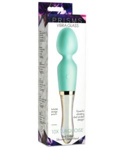 Treat yourself to this gorgeous, turquoise, dual ended glass wand! The turquoise wand end is covered in super smooth, premium silicone that is phthalate-free and body-safe. The neck is semi-flexible so it bends to get those perfect angles as you use it on your oh-so-sensitive spots! The iridescent, semi-translucent handle is made out of durable, borosilicate glass. This is the same glass used in baking dishes, so you know it can handle a little sexy playtime! A small LED light illuminates it when you turn on the vibrations. Enjoy 3 speeds and 7 patterns of powerful vibration that you can feel in either end. Rated as IPX6 waterproof, it can be enjoyed in the shower under low-pressure jets but should not be submerged underwater. Use only with water-based lubricants for best results. Recharge using the USB cable provided.
