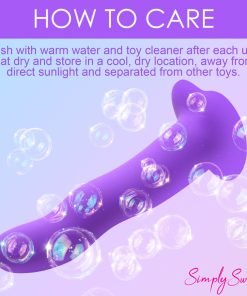Bring something sweet into your sexy collection with the Simply Sweet wavy dildo! This violet dildo has a round head and a wavy shaft, is made out of super silky silicone, and it's also a vibrator! Indulge in 3 speeds and 7 patterns that add intensified pleasure to your penetrating poundings! Control all the settings with a battery-operated remote control that can be used from up to 26 feet away! Made out of premium silicone, it is phthalate-free and body-safe to use with any water-based lubricant. The wide, heart shaped base is compatible with most strapon harnesses and has a suction cup so you can ride hands-free, too! Want to get really wet and wild? Rated as IPX7 waterproof it can handle being underwater for up to 30 minutes, so you can bring it in the bathtub for short term play or in the shower for long, steamy sessions! After use, simply wash the warm water and mild soap, then spray it with toy cleaner and let it air dry. Recharge using the USB cable provided. Replace remote control batteries as needed.
