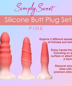 This set of three plugs gives you the best in variety of size and texture! With three graduated sizes of small, medium and large, you can train your derriere to take bigger and wider toys! Additionally, you can have fun doing it and explore more sensation by enjoying the variety of textures offered in this set! Each plug is firm and flexible for your comfort and enjoyment! The small plug has a ribbed texture. The medium plug has a corkscrew line spiraling around the shaft. Finally, the third and largest has a larger head and dips along the shaft that end in a large, round bottom. These dips allow for your sphincter to experience stretching and contracting a few times with every insertion! After you get used to it, you'll love the way it feels!
