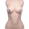 These tweezer style nipple clamps adorn the chest with three graduated silver balls that dangle from the end. The adjustable clamps have a sliding ring that will allow you to modify the amount of pressure that is applied, and are coated with vinyl for comfort and a better grip. These beaded clamps are ideal for beginner or advanced nipple play. With a little imagination, they can also be used on the scrotum, penis, labia, ears, or any part of the body you desire...