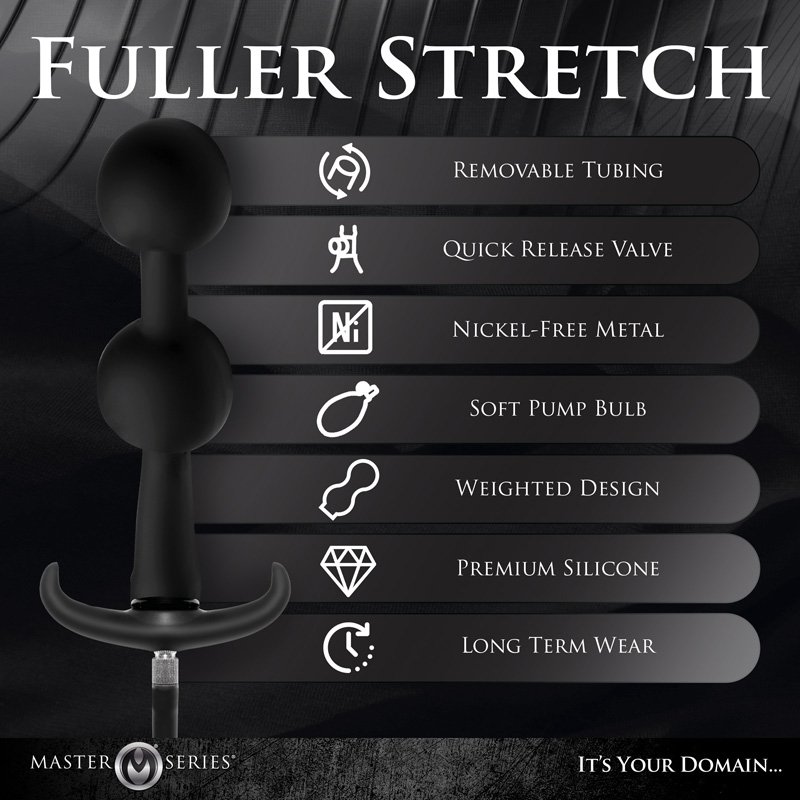 Inflatable Plug: This anal plug has two inflatable balls that start at 1.2 inches in diameter and swell up to 2.8 inches in diameter! Designed to go deep into the rectum, they will fill you up and press against your A-spot or P-spot!
