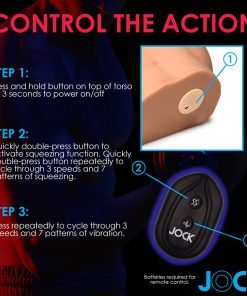 Note: Remote control distance up to 16 ft. Requires 2 AAA batteries, not included. Vibrating and squeezing masturbator is rechargeable with the USB cable provided.