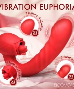 Indulge in ecstasy with the Boom Bloom Thrusting and Licking Rose Vibrator. This exquisite device offers a licking rose with a tantalizing up-and-down motion, featuring 3 speeds and 4 unique licking patterns to thrill you. The shaft is textured with stimulating ribs and a rounded G-spot head for enhanced pleasure. Revel in the ultimate sensory experience with 3 speeds and 7 modes of thrusting and vibration. Its flexible neck allows you to find the perfect position for all your needs. Crafted from high-quality, body-safe silicone, and easily rechargeable for uninterrupted use.