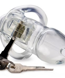 Confine your sub in this clear chastity prison! The Clear Captor locks your partners sexuality in clear view, preventing them from pleasuring themselves until you set them free. Made with forgiving materials for long term comfort, as well as a generous amount of ventilation holes and a pee through tip.