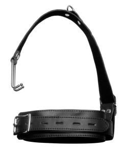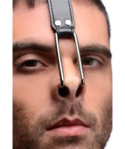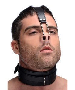 This unique humiliation piece offers an ideal opportunity for control and restraint. Attached to a standard leather collar, the nose hook is designed to keep your sub standing at attention, eyes forward, head back. The hook will keep their head wrenched back into place, however it is possible for your partner to wiggle their way free. This adds an extra dimension of control, restraint not only of a physical nature but a mental one as well. Your sub is required to obey your commands even through discomfort. You can decide their punishment if they let the hook slip free! This devious piece is designed to restrict their movement and requires them to hold their posture- or else!