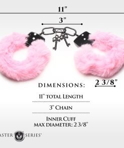 These furry, pink cuffs are soft and sensual against your lover’s wrists. The strong, metal cuffs inside won’t cut into their delicate skin. Instead you have the padding of this faux fur, artificial wool! The cuffs are fully adjustable and close as tight as 4.5 inches and open wide to a 7 inch circumference. Included with the cuffs are 2 keys so you always have a spare! To clean, simply spot clean the wool with warm water and soap and a washcloth, then let dry.