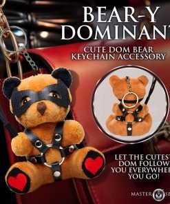 • Discover the Dom Bear Keychain, a blend of cute and edgy! This tiny bear features hearts on its feet and a look that's both menacing and loving. Attach it easily to bags, keys, or anything you want to add a touch of fun. Perfect as a gag gift or a sincere present for friends and partners who enjoy a bit of kink. The bear sports a vegan leather mask, harness, and even holds a tiny flogger in its paw. Make a statement wherever you go with this adorable and unique accessory!