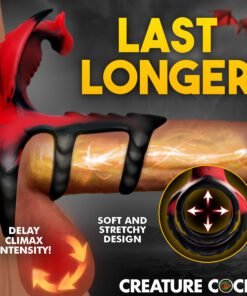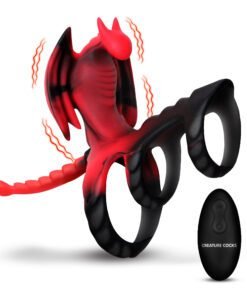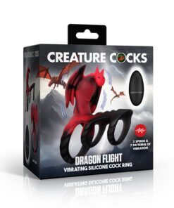 Forget How To Train Your Dragon… let this dragon train you to ride your partner with stamina and vitality! This little guy puts a fire into your pants as his many wrings wrap around your shaft and balls. Experience extended sessions, bigger releases, and a satisfied lover. Ignite your wildest fantasies with the Dragon Flight Vibrating Silicone Cock Ring, a steamy pleasure toy sculpted as a fierce dragon. Rows of ridged scales tease with every movement, offering your partner an irresistible thrill. The vibrating dragon perches boldly at the base, boasting 3 speeds and 7 pulsating patterns that make every session unforgettable. Crafted with artistic detail, this dragon features wings, a ribbed chest, a curved head, and a winding tail, setting the stage for adventurous play. Designed for comfort and control, the stretchy rings embrace both your shaft and balls to enhance stamina while promising an intense climax. Indulge confidently in premium body-safe silicone for the ultimate blend of comfort and excitement.