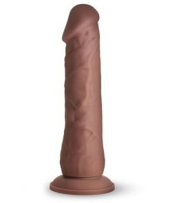 With your eyes closed, you focus on the feeling. The warmed-up rod feels lifelike, real. You enjoy every touch of its heavy, girthy shaft and touch it with your fingertips and mouth. Firm and flexible, it definitely can take you in any angle you desire! You open your eyes and, even in the dim light, it looks realistic. You squirt lube on it, slide it inside, and enjoy the fantasy!