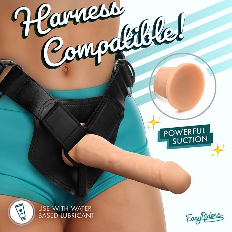 Dive into realism with this dong with the Easy Rider Dildo that features a mushroom head and smooth, veiny shaft, delivering an exceptionally lifelike sensation. It's super firm yet remarkably flexible, able to bend 180 degrees to meet your needs and bend to your will. Change things up by adjusting its temperature; warm it or cool it to heighten sensations. Made from high-quality silicone, it’s body-safe, phthalate-free, and latex-free. The sturdy suction base provides reliable hands-free use and is harness-compatible, ideal for both solo and couple’s play. Enjoy endless versatility and satisfaction with this realistic dong.