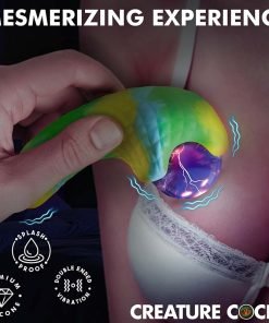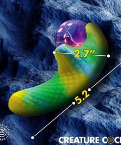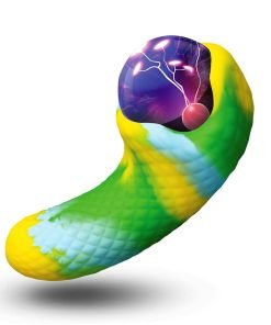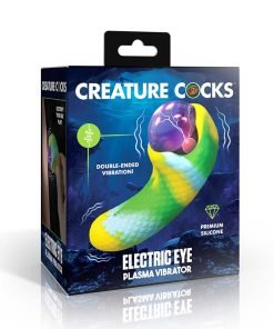 Transform your self-pleasure experience with the Electric Eye Plasma Vibrator, a fantastical creature adorned with scaly green-blue-yellow textures. The unique touch-activated plasma eye glows with pink electric sparks, lighting up your personal moments. Feel the power of its dual motors with 3 speeds and 7 patterns of vibrations at both ends. Made from high-quality textured silicone, this vibrator enhances every touch. Conveniently rechargeable via USB, it's also IPX5 splashproof, ensuring durability through water splashes. Immerse yourself in the magical allure of this one-of-a-kind device.