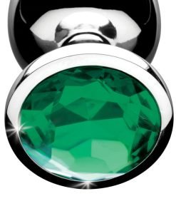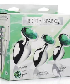 Train that booty with 3 beautiful metal plugs adorned with sparkling emerald gems! Bend over and surprise your partner with a peek of green between your cheeks. Three different plug sizes allow you to take anal play at your own pace, or choose based on what you are in the mood for! Pop in each sleek plug to appreciate the comfortable weight inside your body, thanks to the nickel-free aluminum alloy material. Great for temperature play, you can warm or cool them in water before insertion. The glimmering jewel at the base will draw your partner in to give you more anal attention and pleasure. Use with any lubricant of your choosing and clean after use with mild soap or toy cleaner.