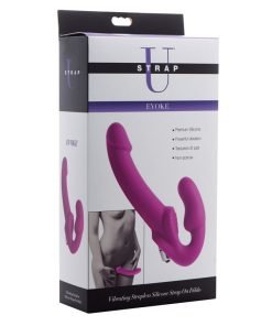 This vibrating silicone strap on dildo requires no harness, so nothing comes between your lover and you but your pleasure. Completely strapless, it stays in place with an insertable, curved probe, delivering delicious G-spot stimulation to the wearer. Just flex your PC muscles and let the powerful bullet send pleasure buzzing into you as you penetrate your partner with the same vibration! The bullet has a simple one-touch power switch, sending powerful sensations from the bulbous penetrator to the long, curved shaft. The smooth, rigid silicone is silky for easy insertion, with a semi-phallic shape and curved shaft for G-spot or P-spot stimulation. Furthermore, the wearer can grind against the textured clitoral pad as they thrust in and out of their partner, finding greater satisfaction than ever before! The waterproof design lets you use it in the bath or shower, with or without the vibrating bullet. Now you can both enjoy strong vibration, comfortable penetration, and immense bliss together!