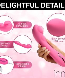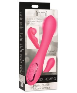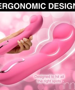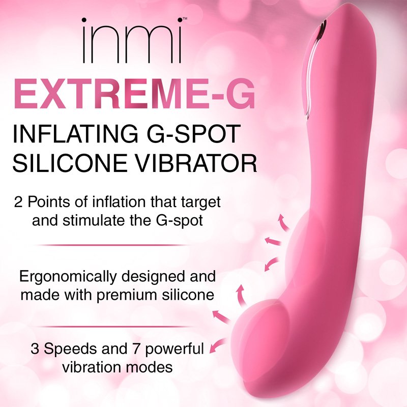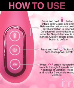 Experience targeted G-spot stimulation with a curved, inflatable vibrator! This toy already has a slight curve to the shaft which helps stimulate you where it counts. The added feature of two inflatable bulbs softly rubbing against your G-spot and adding sensual pleasure to each movement enhances the experience even more and gets you to that Big O even faster! Combine the added pressure from inflation with 3 speeds and 7 patterns of vibration that buzz you into a state of bliss! The silky smooth, phthalate-free, premium silicone is also perfect for deep massages that are body-safe and smooth. Use only water-based lubricants for best results! You can also take it in the shower or get it wet! It is rated IPX5 waterproof so it can handle low-pressure water jets, but do not submerge it underwater. Recharge after each use with the USB cable provided. To clean, wash with warm water and mild soap then spray with a toy cleaner and pat dry.