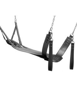 This exquisite bondage sling allows you to access your partner while they are suspended in the air, spread open and waiting for you. The leather material is heavy, while retaining a price point that is accessible for more bondage enthusiasts! The sling allows them to lie back and place their feet in the included stirrups. The padded pillow will cradle their head, with adjustable straps at the head that allows you to raise or lower their upper bodies. The stirrups are detachable with strong metal carabineers, and the advanced material reduces some of the weight for easier transport.