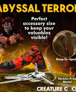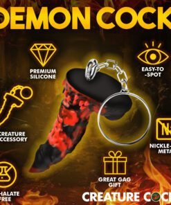 This Fire Demon dong has shrunk down to travel with you wherever you go! Let your freak flag fly with these Creature Cocks keychains! Show off that you're into fantasy roleplay, mythical sex, or hot horror monsters! Place them with your keys, attach them to your phone case, clip them onto a bag or purse, or hang them from your rearview mirror to add a little flair and kinky fun! All the little dongs are made out of premium, phthalate-free, body-safe silicone and the metal is nickel-free for sensitive skin. Not meant for internal use. Novelty item only.