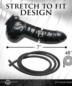 Measurements: Penis sheath length (unstretched): 7 inches. Penis sheath width (unstretched): 1.5 inches. Hose length: 48 inches.