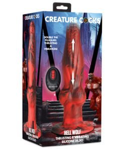 Combine your favorite fantasy dong with the power of your favorite thrusting vibrator and you get this epic creation! The Hell Wolf is hot-headed and horny with a long, lean shaft, a round knot above the base, and a tapered head for easy insertion. Made out of body-safe, phthalate-free, premium silicone you can enjoy a smooth ride. Use the battery-operated remote to control 3 speeds and 4 patterns of thrusting and vibration that will rock your world! The remote works from up to 19.7 feet away. The wide, flanged base makes this an anal-safe toy that is also strapon-harness compatible. Go solo, too! The base has a strong suction cup on it so you can place it on any flat surface and enjoy hands-free rides! Rated IPX7 waterproof, this big, bad wolf can be taken into the shower and even submerged under water for up to 30 minutes! After use, wash with warm water and mild soap, then rinse it and spray it with a toy cleaner before patting it dry and storing it in a cool, dark place out of direct sunlight.