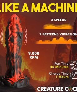 Dive into the flames of passion with the Inferno Cock Vibrating Silicone Dildo! With its mesmerizing red and black color scheme, this dildo offers intricate textures like ridges and spikes for unparalleled sensations. The battery-operated remote allows control from up to 19 feet, featuring 3 different speeds and 7 exciting vibration patterns. Crafted from top-tier, premium silicone, it ensures both safety and comfort. Its strong suction cup base is great for hands-free adventures and fits most strap-on harnesses. Plus, it's IPX7 waterproof and rechargeable with the included USB cable for ultimate convenience.