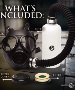 Hose and Aroma Bottle: The 22 inch hose attaches the mask to the aroma bottle. Infuse the experience with an aroma of your choice and increase the difficulty of breathing by adding fluid and perfumes to the bottle.