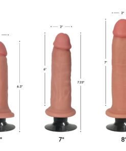 The powerful suction cup base latches these meaty poles to any smooth and flat surface: plop them on the floor of your bathroom or on the walls of your shower and treat your holes with the satisfying girth you crave, with little fuss about the dildos falling or slipping around. The suction cup also makes these dongs strap on compatible! Secure them to your favorite harness and go to town on your partner with the powerful vibration!