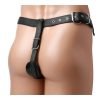 This versatile leather ensemble is perfect for a Domme or a sub, with attractive straps, panels, and hardware that can either strike intimidation or expose vulnerability. Both the top and bottom parts can be worn separately, but can be connected with 3 buckles in the center of the torso. The pelvic harness leaves the genitals exposed for admiration and play, with adjustable straps that wrap tantalizingly around the buttox. The chest harness features soft leather panels, lined with softness, to cover the breasts. Alternately, the panels can be unsnapped and removed for greater exposure. Straps around the neck and back provide further adjustment.