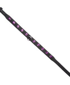 Made of calf nubuck leather, this enticing collar will encircle their throat with style and luxury. The gems are rimmed with shining metal, and the collar is edged with matching stitching. The buckle in the back allows you to adjust it to fit, while the D-ring at the front can serve as decoration, or as a point of attachment for any number of exciting accessories. Slim and comfortable, this seductive collar is sure to add a touch of glamour to your next scene.