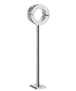 Pin their balls to the floor and experience the ultimate in humiliation and control with this unique bondage piece. Designed to clamp down around the scrotum, it has a non-removal base, designed to be screwed into the floor or other mounting surface. Two screws are included. Just attach the base to a sturdy, flat surface, lay them down, and enclose their balls in the smooth stainless steel CBT stretcher. The allen wrench screw ensures that there is no escape without the proper tools, so they will be held down and at your complete mercy throughout their confinement. We recommend that this device be used lying down to avoid movement and possible injury.