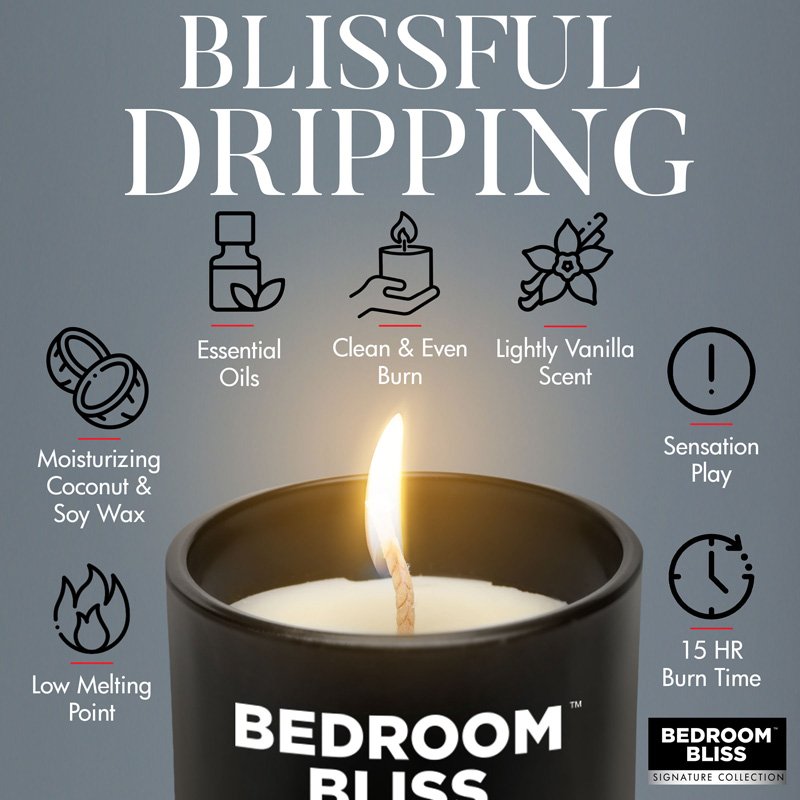 Do something a little different with this Lover's Vanilla Scented Massage Candle by Bedroom Bliss. This unique blend of coconut and soy provides an exceptionally soothing and relaxing blend that moisturizes the skin as you use it. The scent is mild but distinct so you and your lover will always remember those hot nights whenever you smell vanilla. With a low melting point, you can easily get the candle dripping and use it to stimulate and decorate your partner's body with wax! As a bonus, the soy wax has a medium burning point so it takes a little while to heat up but cools quickly on your partner's skin. As the wax touches the skin, so does the coconut that is mixed in with the soy! That means your skin is getting even more love and moisturizing to help protect it from the heat and primed for massage as well. When you want to clean up, use a scraping device (such as a plastic card) to scrape the wax off their body when done, or spank it off their spankable areas to have fun during removal! Make sure to keep the candle away from any flammable materials.