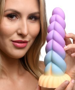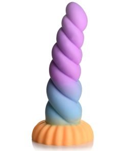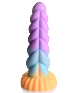 Fantasy Dildo: This colorful, unicorn horn dildo is perfect for making all your mystical, magical, fairytale desires come true! Ride on the swirling, thick bumps of twisted horn and enjoy the graduated shaft that ends on a round, wide base!