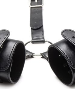 Strap in your submissive with these Neck to Wrist restraints! Doubling as a collar, the soft inner lining is gentle against their skin so you can cinch up the collar and wrist cuffs as tight as is comfortable. The vegan-friendly PU leather is easy to clean and still maintains the sexy, classic leather look! The large O-rings are made of strong, nickel-free metal and can have other bondage items attached to them. Use the buckle to adjust to the perfect fit.