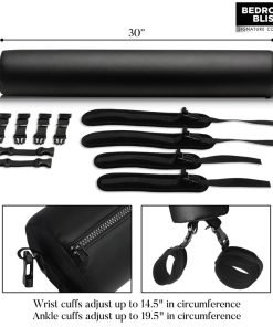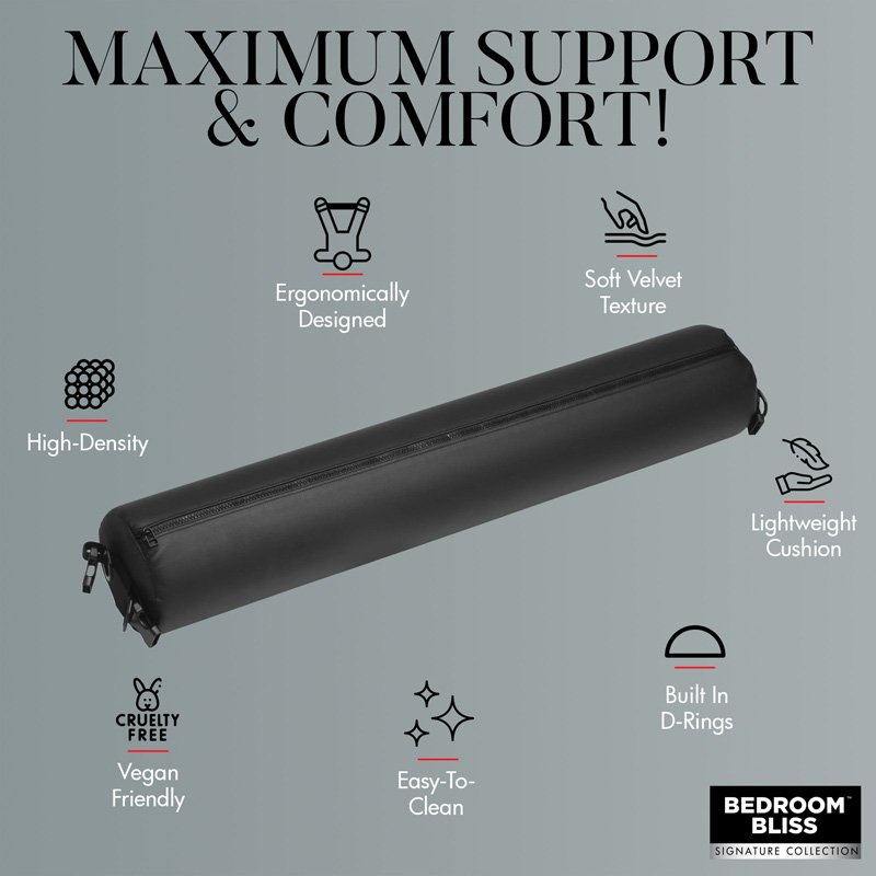 Experiment with naughtier positions than ever before. Use it behind your shoulders to arch the chest, behind the low back to lift the hips, under the neck to prop up the head if your partner is face up. Place it under their pelvis or hips to more easily access their G-spot or P-spot when face down. If you want them to kneel, protect their knees and keep them more securely restrained by having them place the padded bar between their thighs and ankles. Change the way you play and still keep it comfy! Keep their wrists, ankles, or both at once spread for pleasure! Bolster Cushion can be wiped down after your session for easy clean up!