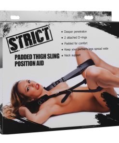 Explore the depths of your lover! This attractive PU leather sling was designed so that you can go deeper for more pleasure between you and your partner! Padded behind the neck and at the thighs for comfort, this positioning aid pulls your play things legs back with ease to allow you greater access than ever before. Each side adjusts so that you can customize the experience to your sexual desires. The neck support will also allow your lover to have a more comfortable scope of the show as they watch you do your thing! Two D-rings located behind the neck area give you the option of attaching your own cuffs to turn your love-making into a naughty bondage experience!
