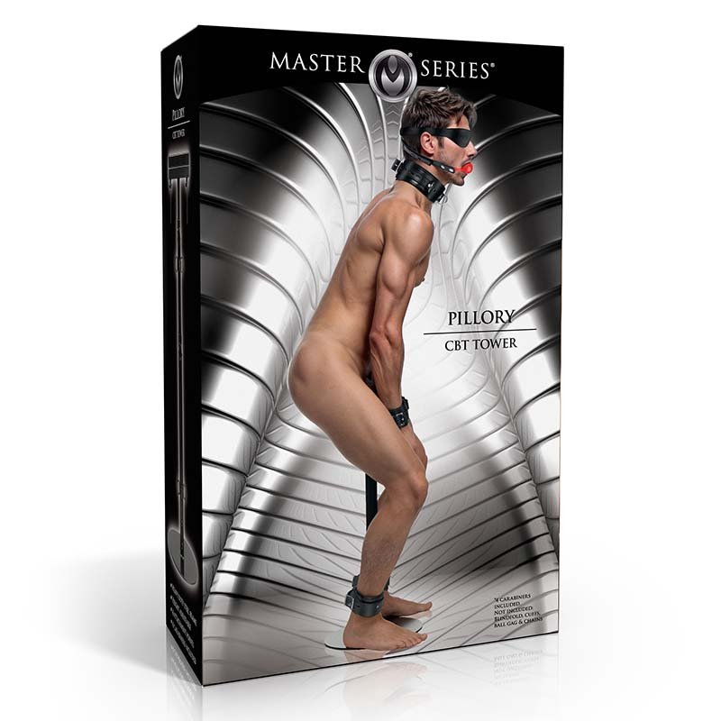 • Transform your space into an authentic dungeon with the Pillory CBT Tower. Constructed from heavy-duty steel, this tower is built to withstand intense kink scenes. Easily adjust the height from 28 to 44.5 inches to cater to various leg lengths so the pillory stands directly at the level of the hips. There are four D-ring attachment points and four carabiners offering bondage possibilities for legs and ankles or places to hang accessories from. The pillory clamp can grip the shaft or testes firmly, ensuring your partner remains securely in place. The most common placement is right behind both the balls and shaft where a C-ring would normally be positioned. Adjust the screws to control the clamp's tightness. Get ready to dive into a realm of medieval punishment with this durable, kinky tower designed for the ultimate obedience from any CBT-loving submissive!