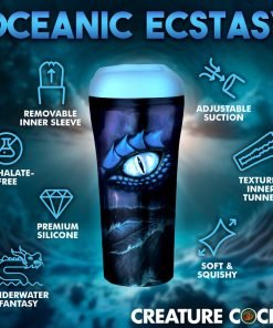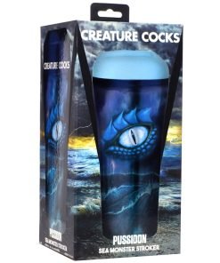 Take on the wonders of the deep sea with this Pussidon Sea Monster stroker! The pale blue stroker has soft, raised lips and a tight little hole for your enjoyment! Inside the stroker are rows of textured ribs, grooves and nubs to drive you crazy as you dip yourself inside and enjoy pumping into the tight hole. Control the pressure and suction by using the silicone plug at the base of the case. Keep it in and each pump will add a little pressure and suction for a tighter squeeze! Remove the plug to release it. The case is open ended once the plug is removed so that you can easily rinse and let the water run through it. For an even more thorough clean up process, remove the stroker sleeve and wash it separately before letting it air dry. Place the cap on top once the sleeve is reinserted to keep it free of dust and debris. Use only with water-based lubricants. Enjoy indulging in your kinky fantasies of sci-fi or horror as you give into your dark desires!