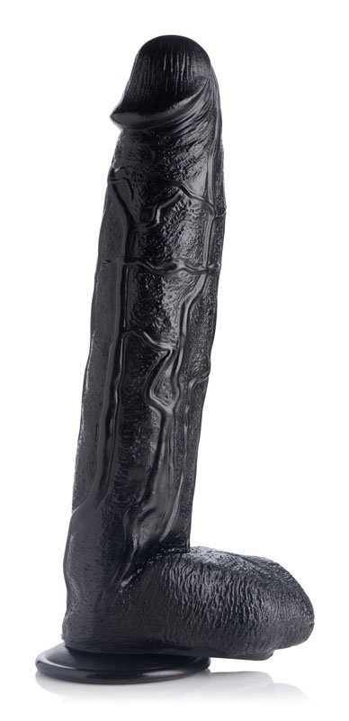 Boasting over 13 inches of insertable length and up to 3.5 inches of insertable diameter, the Raging Rhino dildo is a force to be reckoned with! It is not all about size though - this monster member features a dramatic coronal ridge and bulging veins that will massage your insides... if you can manage to fit it in. Explore extreme vaginal or anal stretching with a dong that tests your limits to the max! The strong suction cup base allows you to mount it to a hard, smooth surface and impale yourself. This phthalate-free material is compatible with all types of lubricant. Clean after use with warm water and a mild soap or toy cleaner.