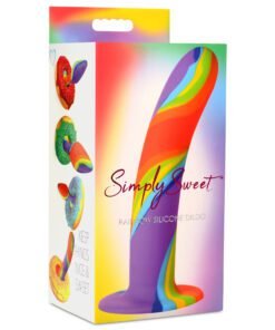 Bring a burst of color into your playtime! This rainbow colored dildo is vibrant and fun! Made out of the best body-safe materials, this premium silicone rod is phthalate-free, latex-free and best used with water-based lubricants only. It has a thick rod, a round head, and a slight curve to the shaft to better hit the G-spot, P-spot or A-spot. The base is wide, flanged, and has a strong suction cup so you can enjoy hands-free rides! Place it on any flat surface to ride it while your hands are free to do other things. It's harness compatible, so you can enjoy it as a strapon and get pegged, peg your partner, or simply play as a couple! To clean, wash it with warm water and mild soap before rinsing it off, spraying it with toy cleaner, and patting it dry. Store separate from other toys and out of direct heat or sunlight.