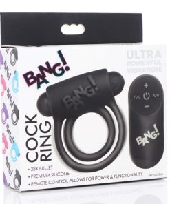 Enhance your cock with this velvety silicone ring and vibrating bullet combo! This Cock Ring from Bang! features two stretchy rings, one for your shaft and one for your sack, to increase erection hardness and duration while providing a satisfying hug. This powerful silicone ring also features an intense bullet vibe strategically placed to stimulate your lovers clitoris with every thrust!