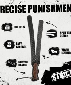 Torment your pupil or tease your submissive with this tawse whip! The split-end design was popular in Scottish schools as a form of discipline and punishment. Enjoy the detailed accents on the tails and handle of the flogger whip and the realistic look and feel of this vegan leather! It has a curved handle for easier grip and handling and a loop for hanging up when not in use. To clean it, spray with a toy cleaner and wipe it dry with a cloth. Hang it up to keep the leather from getting warped or bent.