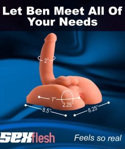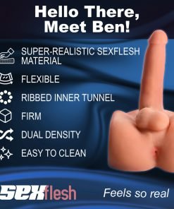 Ride a thick cock or a tight ass with the SexFlesh Both Ways Ben! This lifesize, super-realistic masturbator and dildo combo meets all of your needs, for whatever mood you are in. The incredibly lifelike SexFlesh material mimics a supple, eager ass for you to penetrate, complete with ribbed inner tunnel for maximum stimulation and through hole for easy clean-up. The generous cock not only boasts a dual-density firm core and fleshy surface to make all of your meaty fantasies come to life, but is also posable so you can bend and position it to the prefect angle for you. Take your time and try to accommodate as much of the over 2 inch wide shaft as you can! Enjoy your preference to take or be taken with Both Ways Ben!