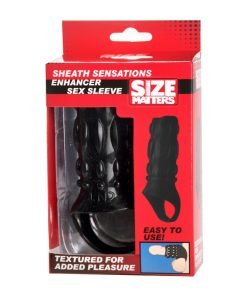 Try this on for size! This thin, textured cock sheath is perfect for the man on the go. Now you can slip into instant erection enhancement, with no waiting, pills, or creams! The outer texture stimulates your lover with every thrust, and provides a subtle girth boost on any size. The stretch to fit design is open ended, designed for every man in mind. You can enjoy more intense climaxes and longer lasting performance with enhanced blood retention. Just slip the band behind your balls and slide the shaft onto your own. The extra strap ensures extra enhancement, and helps it stay firmly in place no matter how tight the hole or how hard you pound. The stretchy TPR gives you the best fit and feel available.