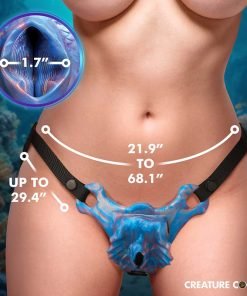 Experience the allure of the deep sea with the Siren Snatch Silicone Strap-On! This magical piece covers your vulva, turning it into a beautiful, shimmering blue mermaid snatch. Your partner will delight in the exhilarating vibrations, which you control through a rechargeable bullet featuring 4 speeds and 7 delightful patterns. The adjustable nylon straps ensure a secure and comfortable fit, while your backside remains exposed for extra fun. Made from top-tier, body-safe silicone, this splashproof vibrating snatch guarantees a safe and captivating underwater adventure, right in your bedroom!