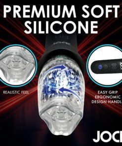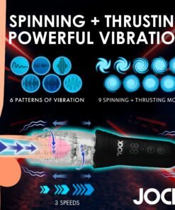 With the spinning, thrusting, vibrating masturbator from JOCK, you'll never want to use any other toy again! Featuring a clear, rubber sleeve with a tantalizing, mouth-shaped opening, this device is textured with small nubs designed to caress and stimulate with each stroke. Enhance your solo sessions with 9 modes of spinning and thrusting, complemented by powerful vibrations available in 3 speeds and 6 patterns. Crafted from quality, body-safe materials that are latex-free and phthalate-free, this toy ensures safety and comfort. Conveniently rechargeable via the included USB cable, it's also splashproof with an IPX5 rating, making it perfect for wet play, though not suitable for the shower. Elevate your pleasure game now!