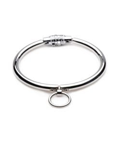 Adorn your slave in a symbol of their complete surrender to submission. This beautiful and heavy-duty collar is made of stainless steel, with a unique detail that sets it apart from other BDSM collars. A combination lock ensures that your plaything has no hope for escape until you offer release, just the way they like it! The O-ring on the front allows you to attach other bondage accessories, such as a leash or nipple clamps. The smooth, rounded edges make this a comfortable collar for private play or 24-7 wear.