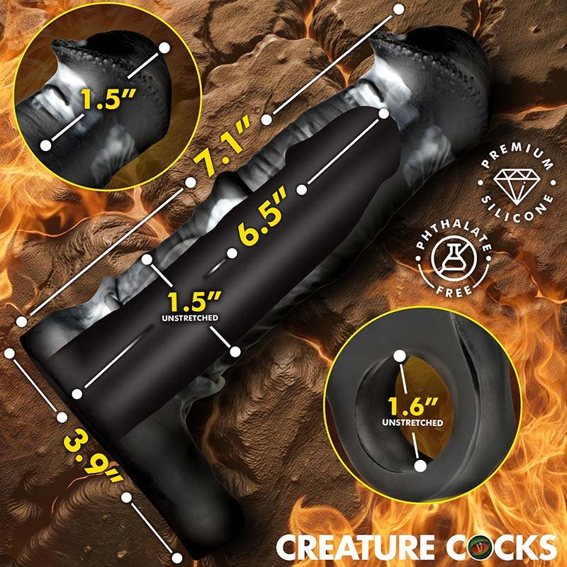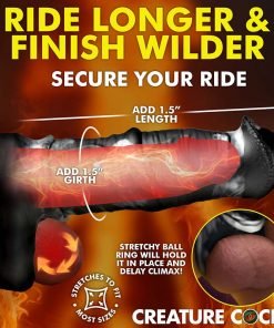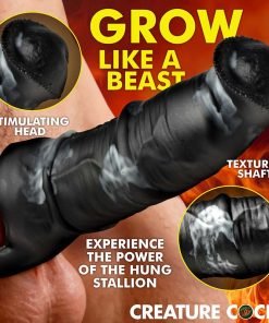 • Take your intimate play to a new level with the Stallion Silicone Penis Extension! Transform into a wild equine stud with this incredible sheath that promises to leave your partner in awe. With a substantial increase in length and girth, this extension provides the perfect boost for heightened pleasure. Featuring a wide, flared equine head that ensures deep, ecstatic moans with every thrust, the realistic texture of the veiny, black and gray shaft delivers a sensational experience. The stretchy ball ring keeps everything in place and extends your performance. Made from body-safe, premium silicone, it's a must-have addition for adventurous couples. Remember, use only water-based lubricants for optimal performance.