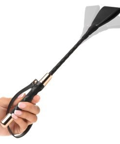 Add a sturdy crop to your collection and always have a wicked tool on hand for spankings and kinky play! This riding crop delivers a sharp and certain bite for when you want to kiss your partner with a touch of delightful pain. Made out of vegan friendly leather, this crop has a textured grip that helps you keep your grip as you play. The firm rod at the center is made of a glass fiber that is firm with enough flex to handle impact. The triangular end is perfect or precise and specific impact play. To clean, spray with a toy cleaner or a mixture of alcohol and water.