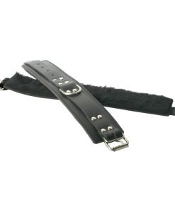Plush faux fur lines the bottom of these Wrist and Ankle cuffs equaling a comfortable fit on a person's wrist or ankles. The cuff is durable and has a D-ring for attachment to other bondage gear.