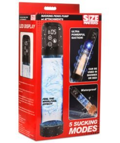 It sure feels good to get sucked, doesn't it? Well now when you pump up your peen you can enjoy the feeling immediately with this sucking penis pump and masturbation sleeve combo! There are 5 suction modes to choose from and two different premium silicone pump sleeves that give you a tight seal. When you're all pumped up, you can swap out the pumping sleeves for a realistic looking pussy masturbation sleeve! Made out of soft and stretchy TPE, this sleeve has a textured inner tunnel that grips and massages your shaft with each stroke. Rated as IPX7 waterproof you can take it in the shower or even submerge it in the bath for up to 30 minutes! Use only with water-based lubricants for best results.